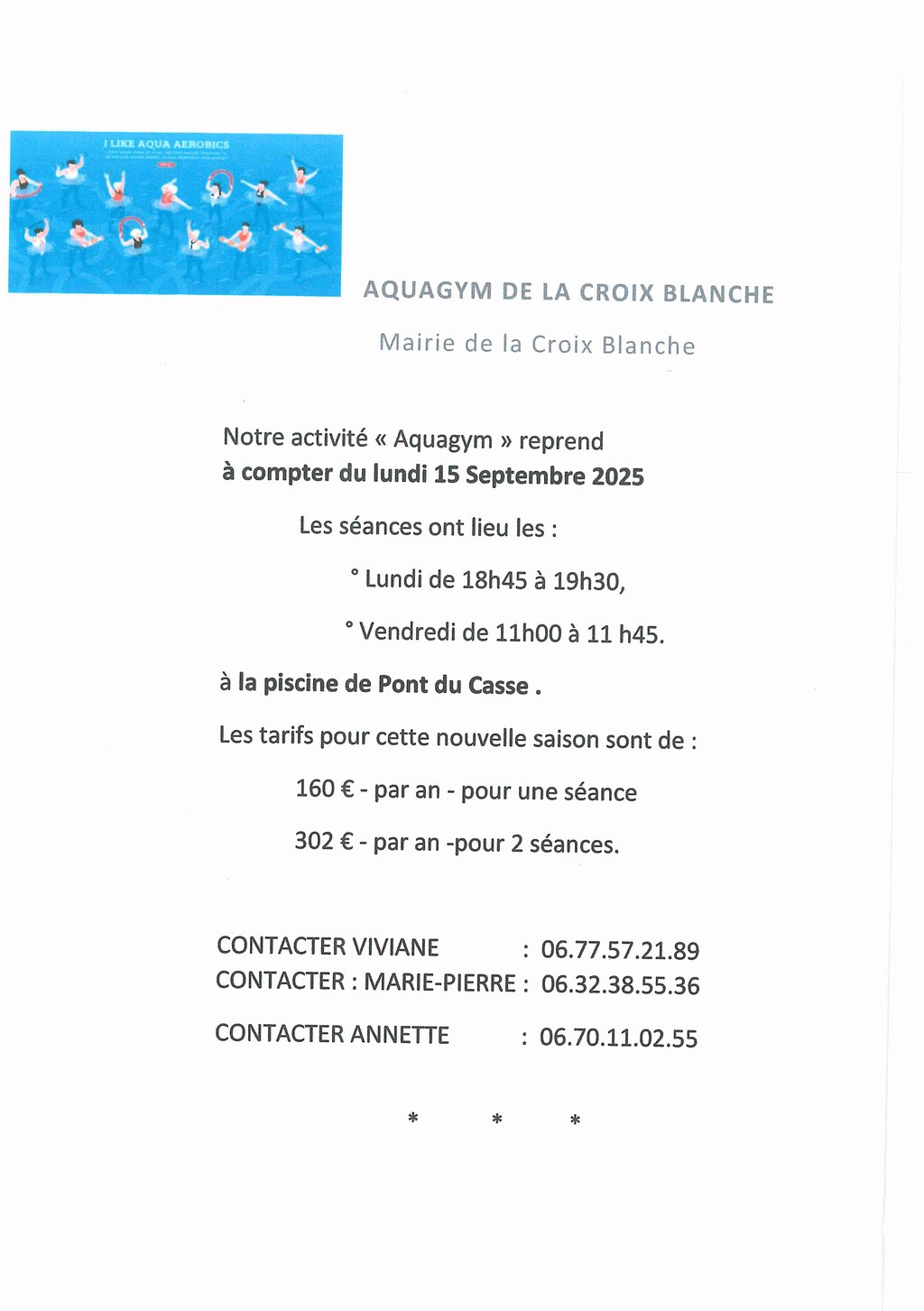 REPRISE DE L'AQUAGYM