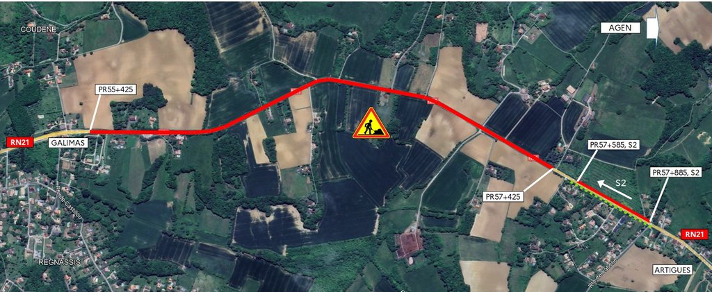 de 600m sur la RN21 et la vitesse sera limitée à 50km/h.