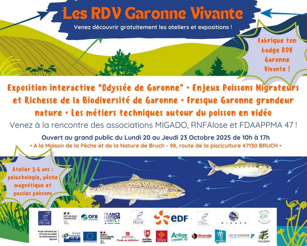 Les plus petits pourront s'essayer à l'atelier peluchologie, pêche magnétique et puzzles poissons et chaque visiteur pourra fabriquer son propre badge RDV Garonne Vivante !